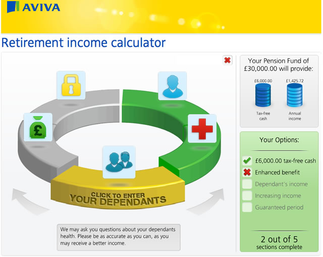 Contract work, new Retirement Income Calculator for a major Aviva campaign aimed at increasing Retirement business.